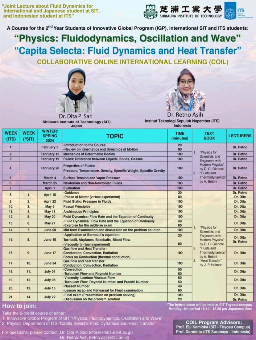 The COIL Program on Fluid Dynamics, an Innovative Global Program Shibaura Institute of Technology and Department of Physics ITS in 2024